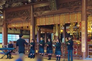今回は現役生5人のみでの演奏でしたが、本堂はとてもよく響いて心地よく、またとても多くの参拝客の方にご覧いただけて嬉しかったです!